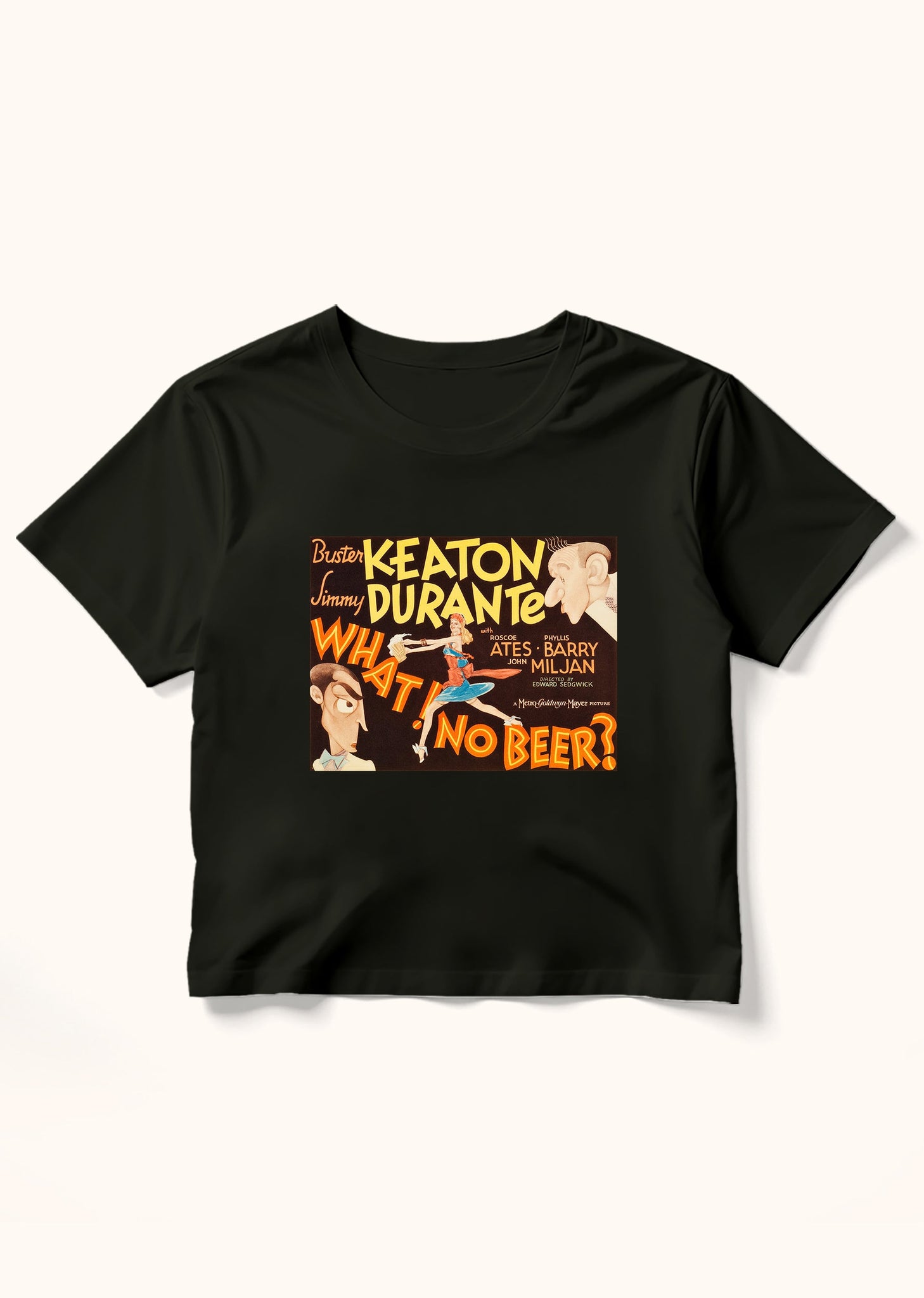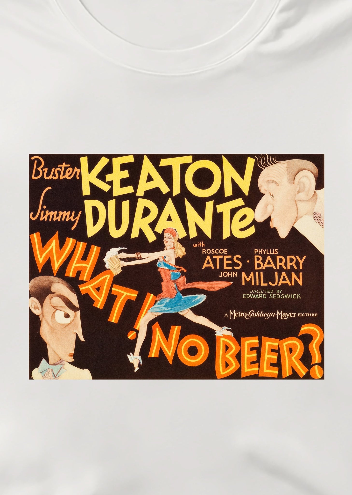 1934’teki sansür yasası öncesi, 1933 yapımı bir komedi filmi: What! No beer? Amerika’da 1920-1933 arası içki yasağı söz konusu, dünyanın birçok yerinde de öyle. Birinci Dünya Savaşı etkileri. 1933’te bu yasağın kalkacağına dair tartışmalar başladığında çekiliyor bu film. Kendi biralarını üretmek isteyen Jimmy ve Elmer’ın, terk edilmiş bir bira fabrikasını satın alıp yola çıktıkları macera, tabii ki bir aşk hikâyesiyle de bağlanıyor. Başrollerde Buster Keaton ve Jimmy Durante var. Yönetmen Edward Sedgwick. Bu müthiş filmin, afişi de müthiş. Havalı bir tişört isteyenler için.