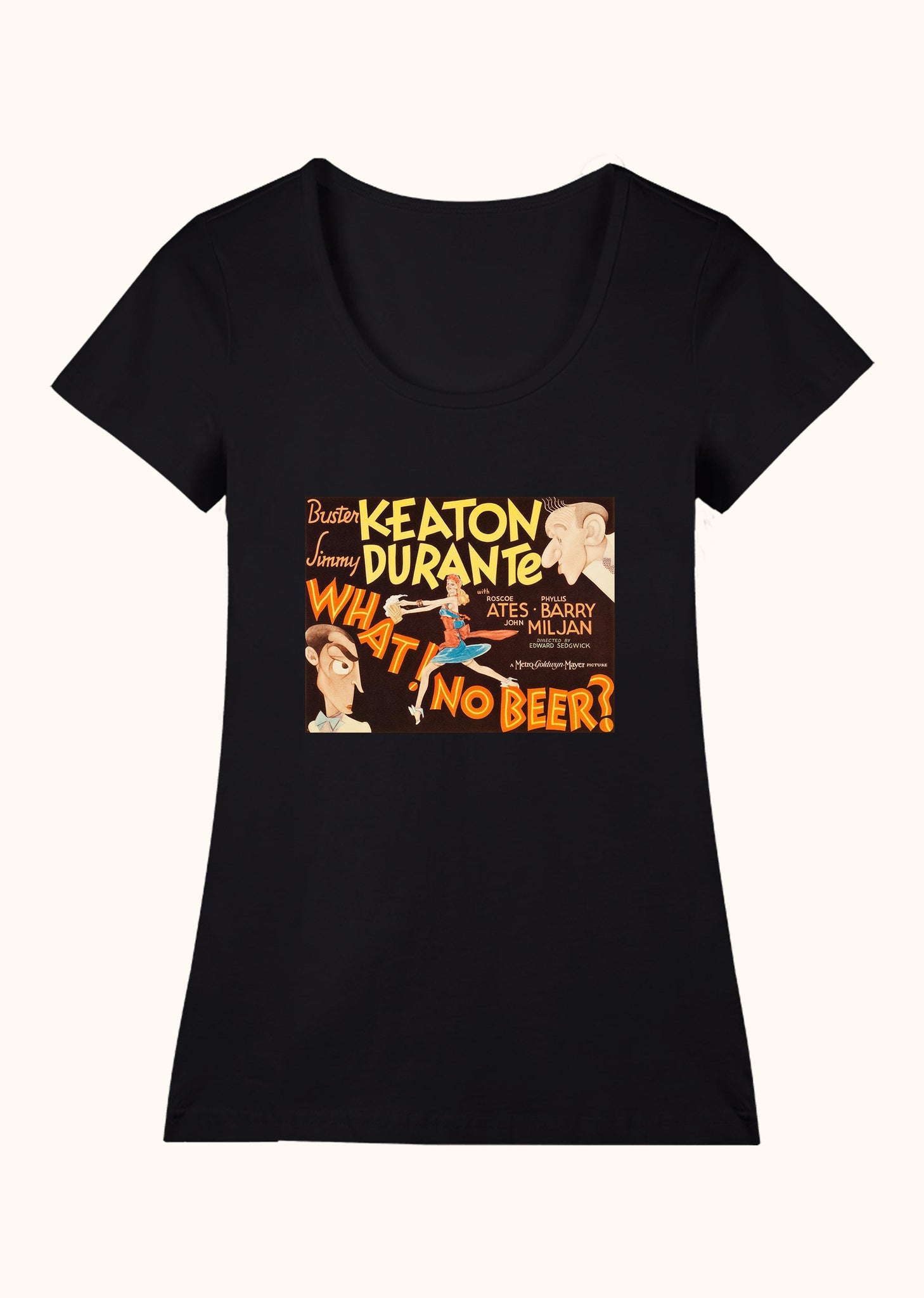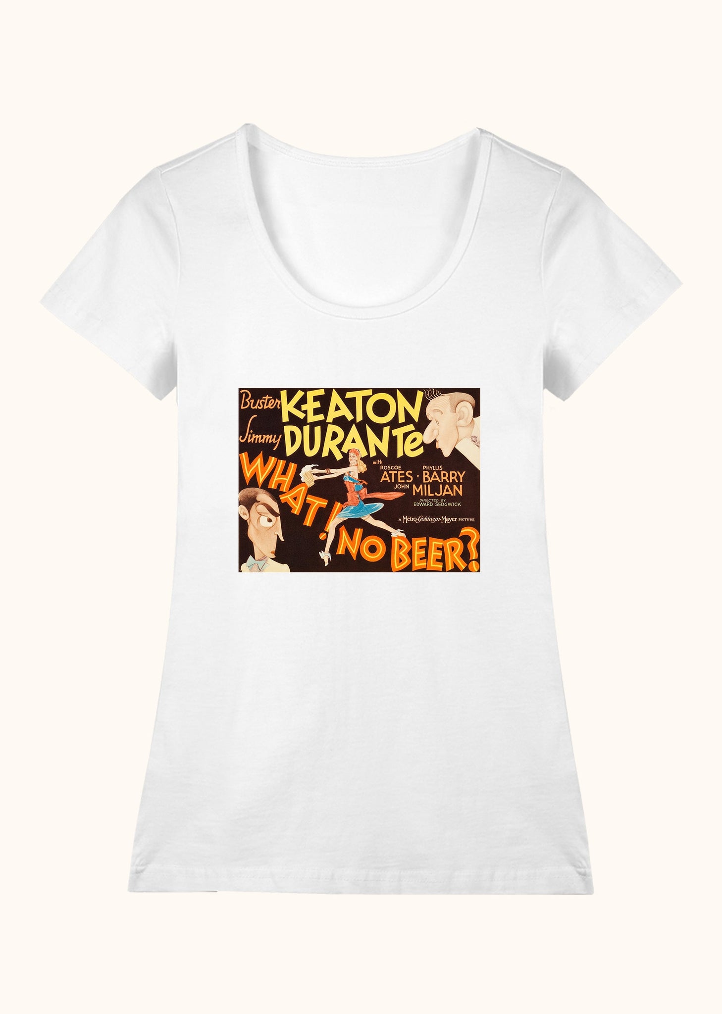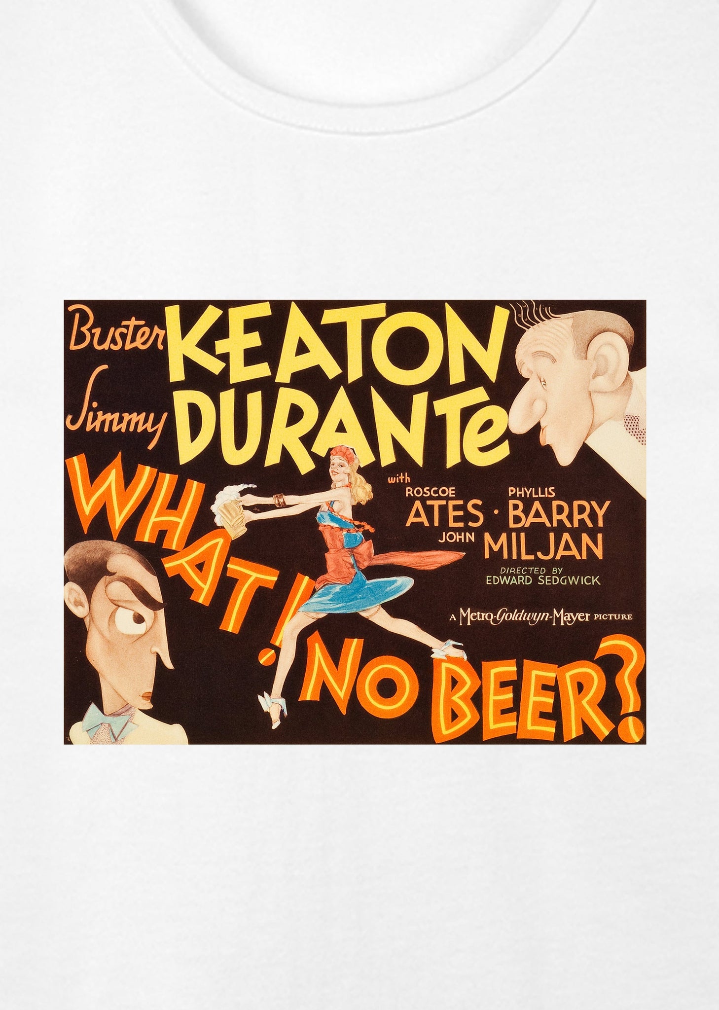 1934’teki sansür yasası öncesi, 1933 yapımı bir komedi filmi: What! No beer? Amerika’da 1920-1933 arası içki yasağı söz konusu, dünyanın birçok yerinde de öyle. Birinci Dünya Savaşı etkileri. 1933’te bu yasağın kalkacağına dair tartışmalar başladığında çekiliyor bu film. Kendi biralarını üretmek isteyen Jimmy ve Elmer’ın, terk edilmiş bir bira fabrikasını satın alıp yola çıktıkları macera, tabii ki bir aşk hikâyesiyle de bağlanıyor. Başrollerde Buster Keaton ve Jimmy Durante var. Yönetmen Edward Sedgwick. Bu müthiş filmin, afişi de müthiş. Havalı bir tişört isteyenler için.